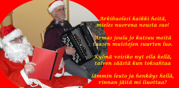 Joulupukki ja musisoiva tonttu ilahduttivat