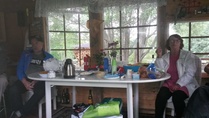 Pystytettiin kahvikota juhlapaikan pihalle, huolehdittiin juhlaväelle kahvia, pullaa, sämpylää... ja hoidettiin yövartiointi. Oli aurinkoinen, kesäisen lämmin keli ja iloinen mieli. Työ sujui todella mukavasti 3 tunnin vuoroissa. Kaikkiaan talkoisiin osallistui 27 jäsentä. Todella onnistuneet juhlat.