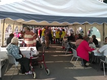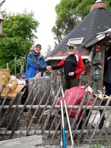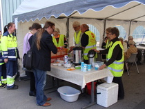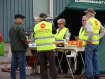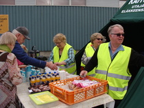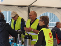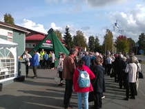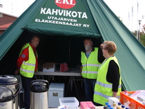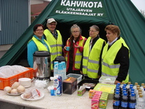 Pystytettiin kahvikota juhlapaikan pihalle, huolehdittiin juhlaväelle kahvia, pullaa, sämpylää... ja hoidettiin yövartiointi. Oli aurinkoinen, kesäisen lämmin keli ja iloinen mieli. Työ sujui todella mukavasti 3 tunnin vuoroissa. Kaikkiaan talkoisiin osallistui 27 jäsentä. Todella onnistuneet juhlat.