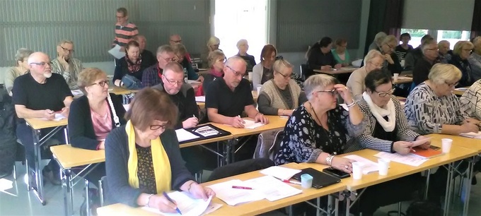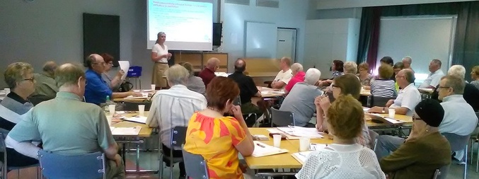 Opiskeltiin tiiviisti asiaa, kouluttajana EKL:n sosiaalipoliittinen asiantuntija Tarja Pajunen. Oulun Piiristä oli mukana kolme vanhusneuvostoaktiivia.
