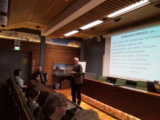 ![]() Laulamme onnittelulaulun Pentti Räisäselle, Paavo Pelkonen säestää. |
